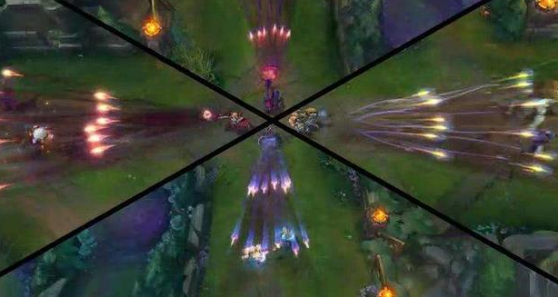 对线期多借助敌人远距离丝血小兵,Q技能的二段弹跳伤害在击倒单位中会带来巨额伤害,1个Q技能能损耗敌人1/3左右以至1/2左右的生命值。