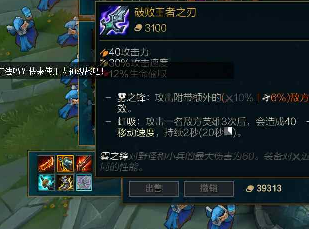 【兰顿之兆】:对面Ad型刺客较多的话,这时也可以选择这一件装备,减少自身备受的普攻伤害,与此同时对手贴身以后还能够减少对面的攻击力与暴伤,搭配血手的防御盾特效极好。