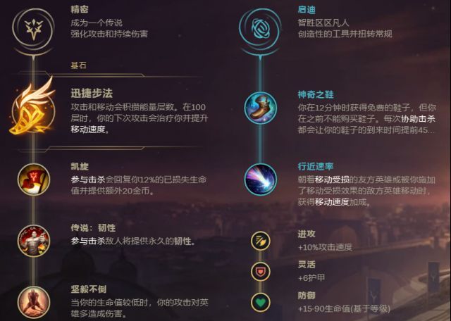 在后续的符文选择中,凯旋符合屡次打团的蒙多,传说韧性搭配本身技能的韧性更加高,坚韧不倒让蒙多可以丝血单杀。行近速率是Q技能是最好搭配,奇异之鞋带来了另外的移动速度。而在属性符文上,便是选择攻击速度、护甲和血量,攻击速度加速刷野效力,搭配E技能增添攻击力的特效有另外收获。