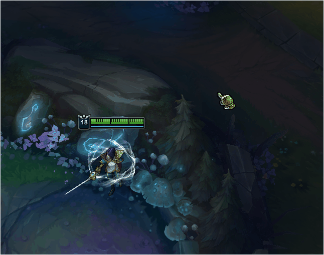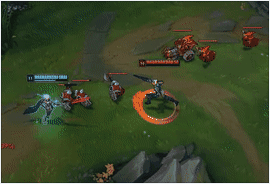 因为奥拉夫是一个近战持续输出的英雄,所以剑姬可以使用一击离开的套路。同时奥拉夫的斧头在捡起之后会减少CD,所以在中了之后,要尽量的朝着不同的方向移动,这样才不会被后续减速。