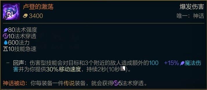 卢登带来了巨额法术强度和高频率的移动速度加成和厉害的推线力量。