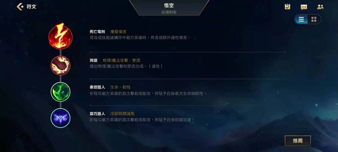 猴子的爆发非常高,所以电刑是最适合猴子的基石符文无疑。凶蛮提升猴子的进攻和穿甲能力,泰坦猎人提升猴子的坦度和韧性,灵巧猎人则提升猴子的技能CD。