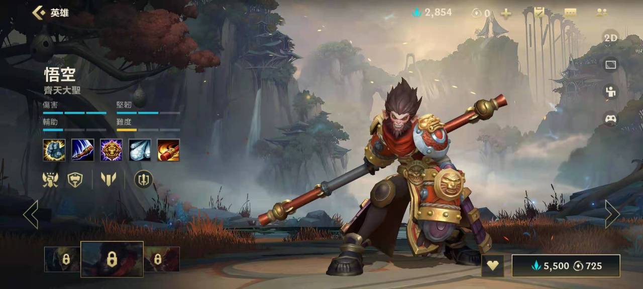 猴子一级学Q,有机会或者对手冲上来就直接敲对手1棒子,慢慢发育到3级后是猴子的一个强势期。EAQAW的无伤换血连招非常强,等对手到了斩杀线一套技能直接带走。