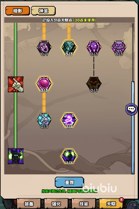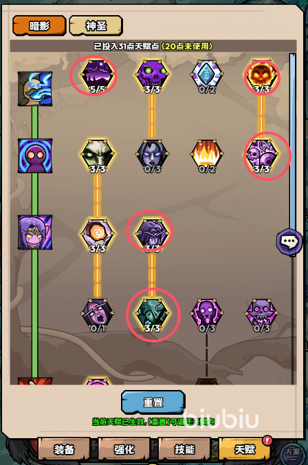 天赋方面,推荐大家选择暗影天赋,牧师升级时,暗影天赋是初期良好的选择。至于技能顺序方面,因为他们的群攻能力是比较弱势的,而且职业升级的速度相对比较慢,所以这边建议把暗影旋涡和圣域冲击放在前面,之后的单体伤害技能,以及恢复、盾相关的可酌情放在幽影涌动的后面,这样能提高对单能力,也降低对食物的消耗。