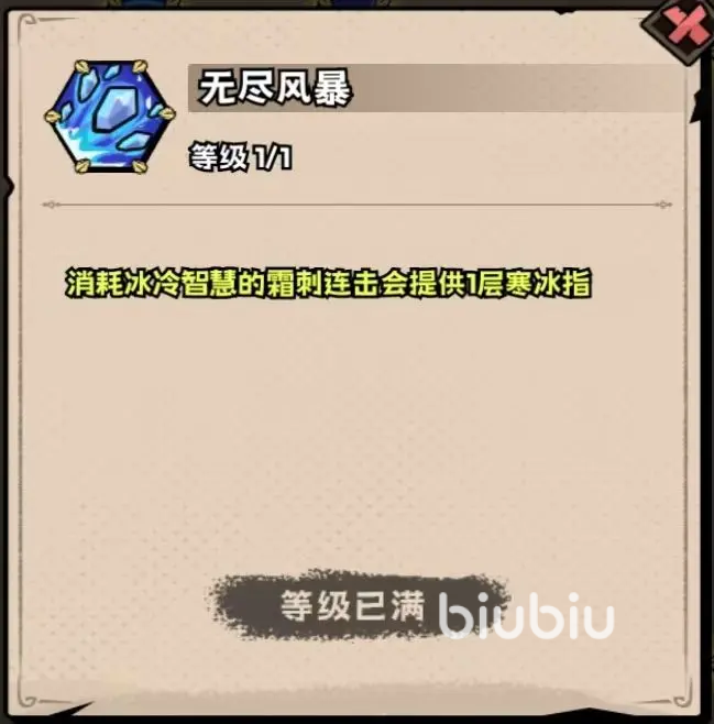 在技能的加点方面,“奥数智慧”,“熔岩铠甲”,“暴风雪”,“冰锥术”,“魔爆术”,“冰霜新星”,“火焰冲击”,“寒冰箭”,“冰风暴”都推荐去加点使用,根据蓝量的情况,也可以选择“霜冻护体”加入到技能循环的序列当中,这样能减少失误的消耗。