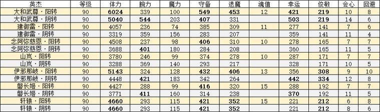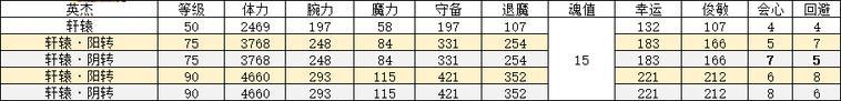咱们能够看见,轩辕无论阴转或是阳转,统一级别的7项基本标值是相同的,仅有会意和回避率的不一样。