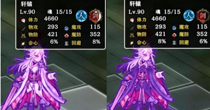 会心率阴转高过阳转,回避率阳转高过阴转。与整体上阴转夸大输出(爆击),阳转器重防御(闪避)相对符合。