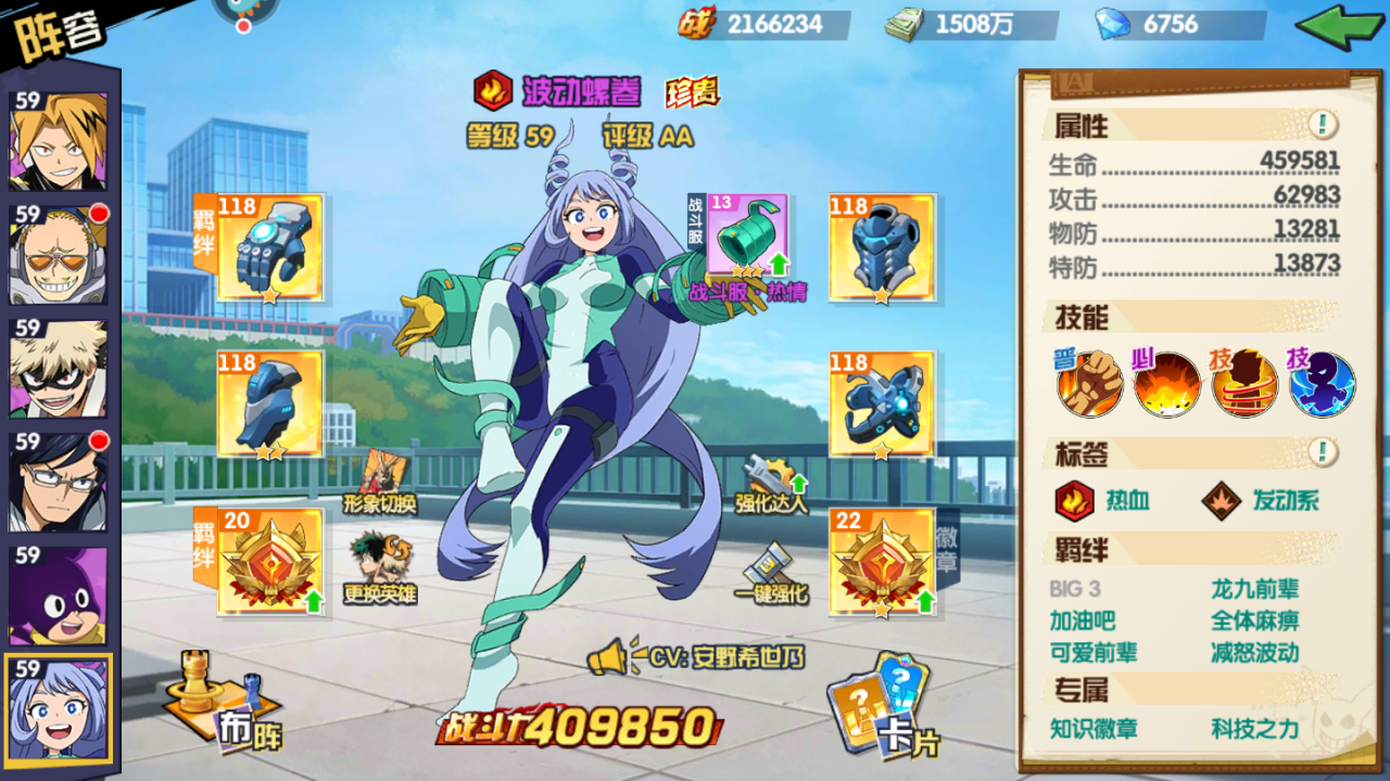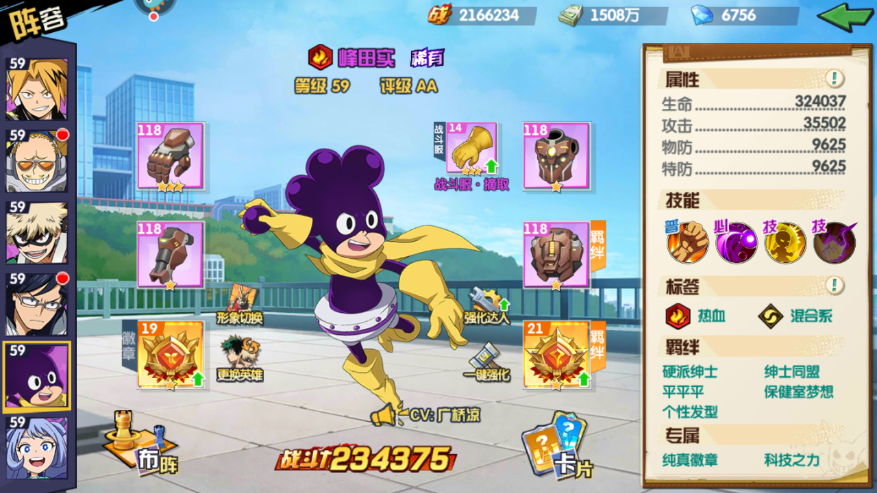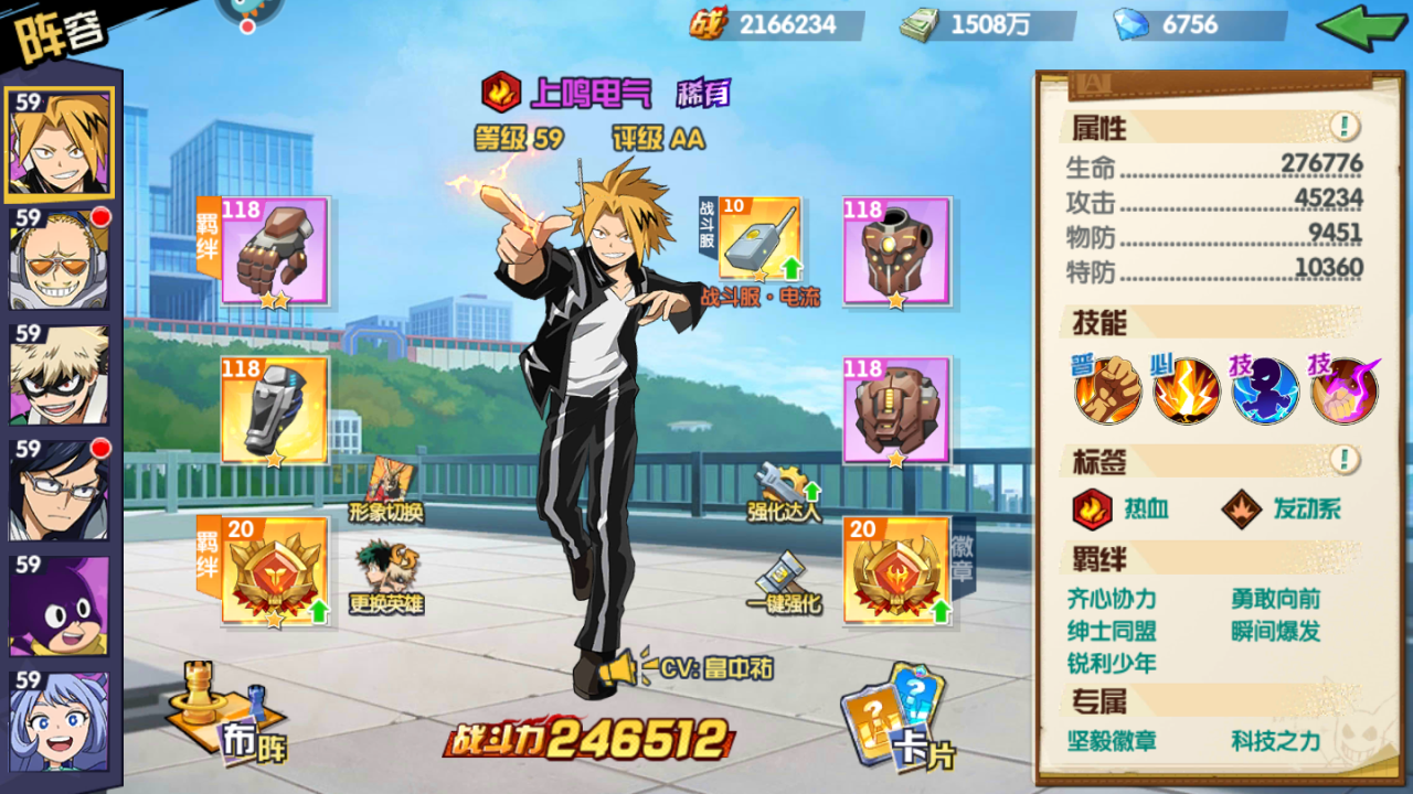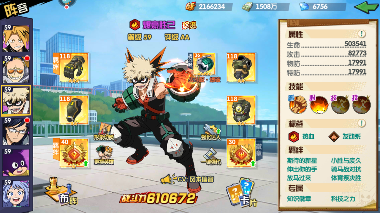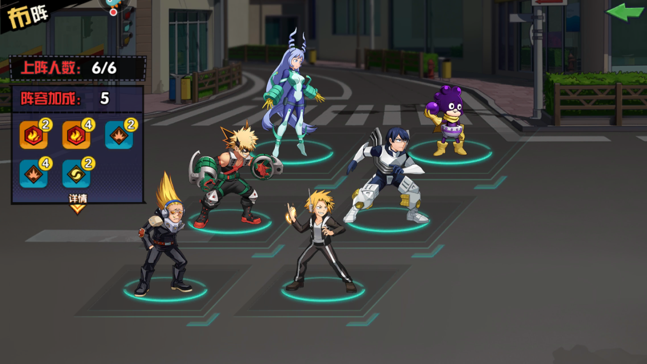 2、角色推荐:爆豪(热血,发动)、濑吕范太(热血,混合)、轰焦冻(冷峻,混合);安德瓦(冷峻,混合)、峰田实(热血,混合)、布雷森特(热血,发动)。