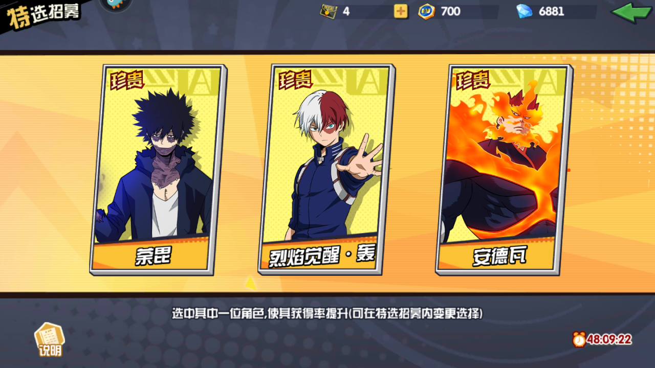 3、热点角色在本次招募中获得率提升,稀有热点角色在稀有角色中获得率提升。