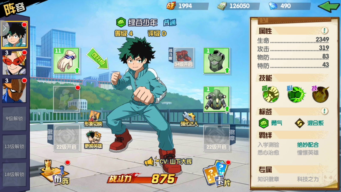 2、平民阵容:绿谷班长、轰总、茶子、叶隐、青蛙,这一套阵容要廉价的多,只要大家多完成任务,0可玩家很轻松就能凑齐。