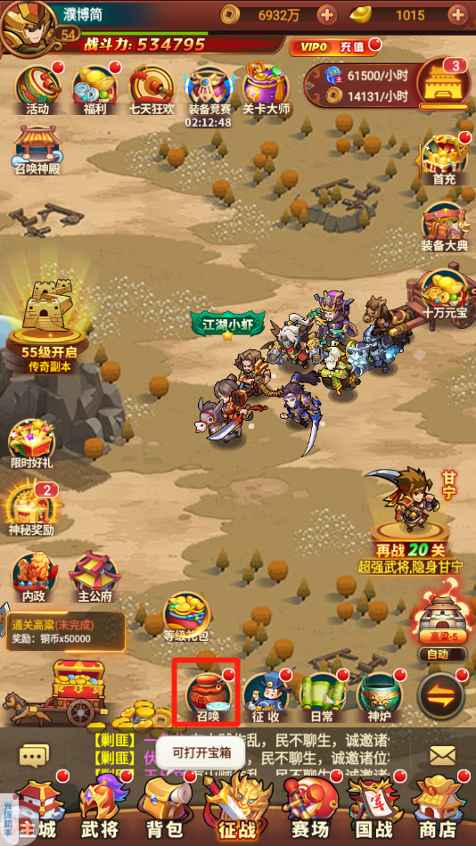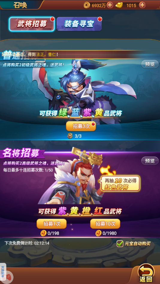 2、招募功能的前几次十连抽是必得到七星红武将的,大家还是把握一下这个机会的到,等到必出红将的机会用完之后就不用再次抽了。