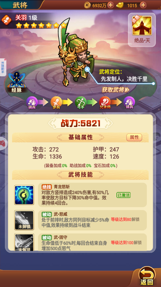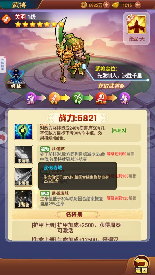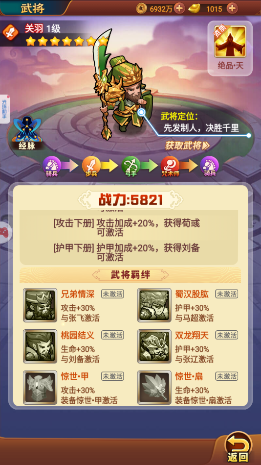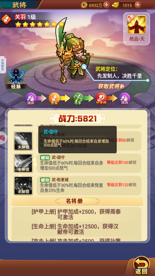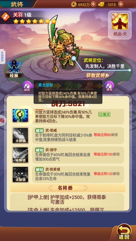 (6)护甲下册:护甲加成+20%,获得刘备可激活。