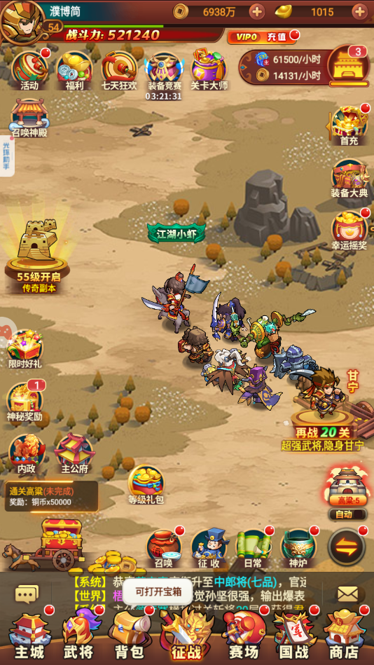 (1)七星合成:达到八十级之后就可以解锁七星红武将的合成了,合成系统适用于英雄以及装备,即使大家不氪金不抽卡,靠着积攒的垃圾装备和武将也是可以合成出七星红将的。