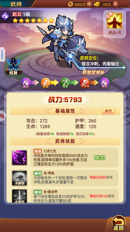 (2)角色助战:由于前期主要都在培育赵云,因角色肯定是比较匮乏的,那么助战选择橙色武将讲究一下就可以了,不过还是要进阶到9的好。等到赵云入圣的时候,多余的红将就不必在吝啬了,直接替换掉之前的橙色武将吧。