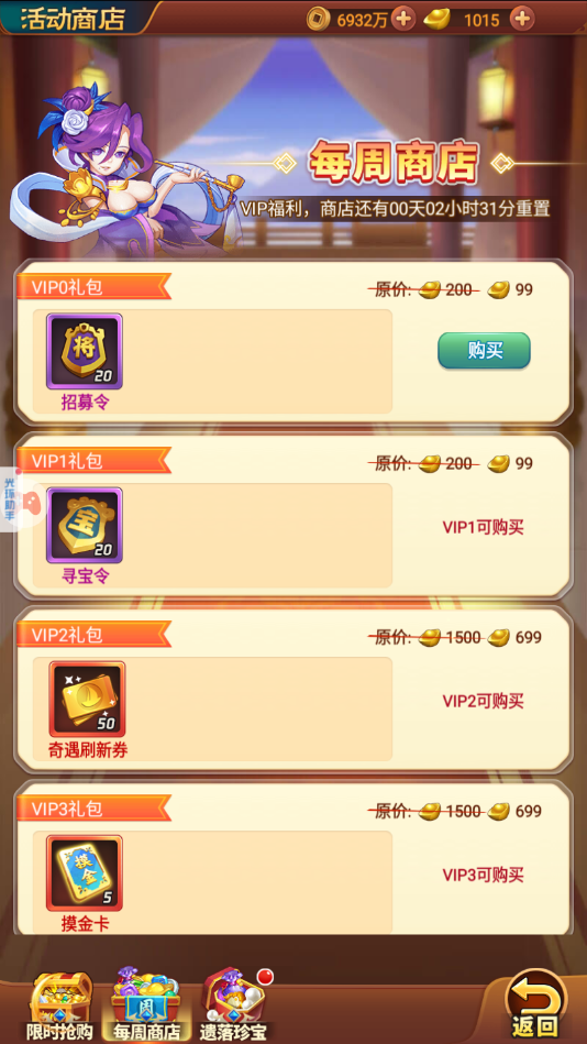 2、一般开启时间:神将神装宝石,宝物,神器五个召唤每隔六天开启一次。