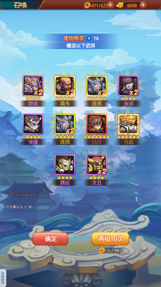 2、招募功能的前几次十连抽是必得到七星红武将的,大家还是把握一下这个机会的到,等到必出红将的机会用完之后就不用再次抽了。