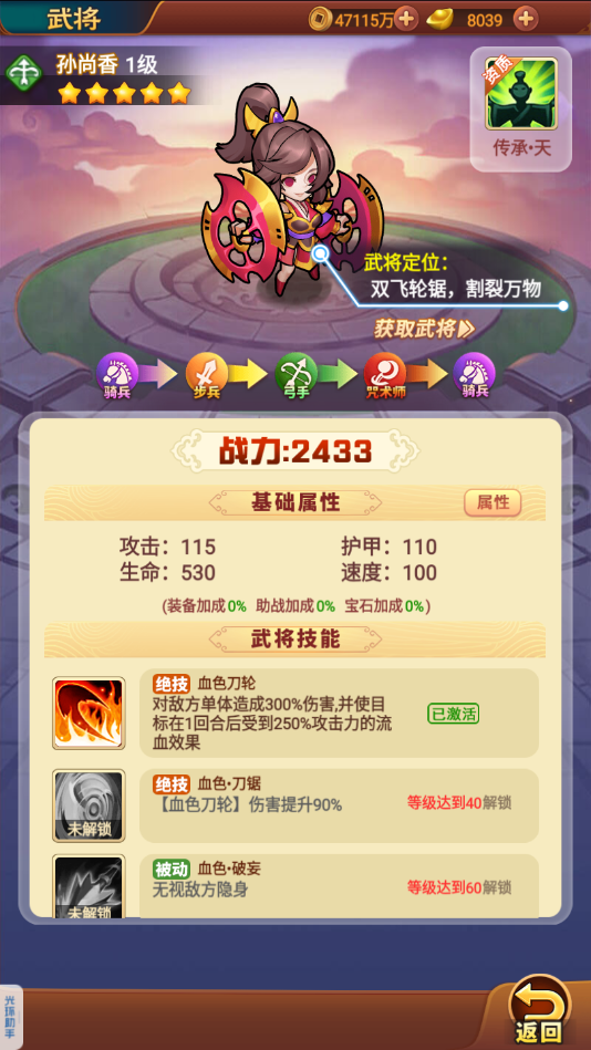 (2)基础属性:攻击力115、生命值530、护甲值110、速度100。