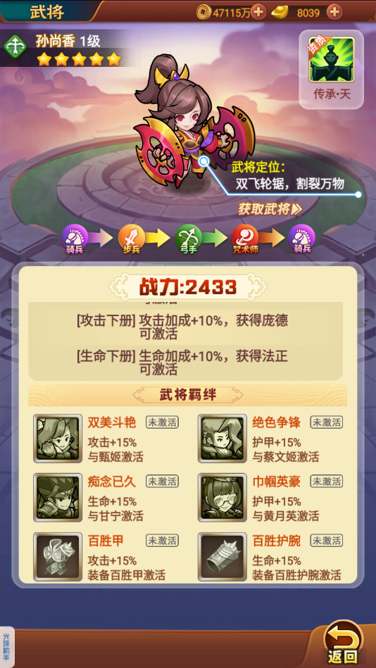 2、孙尚香作为五星角色,获取难度其实没有那么高,依靠普通招募就行。