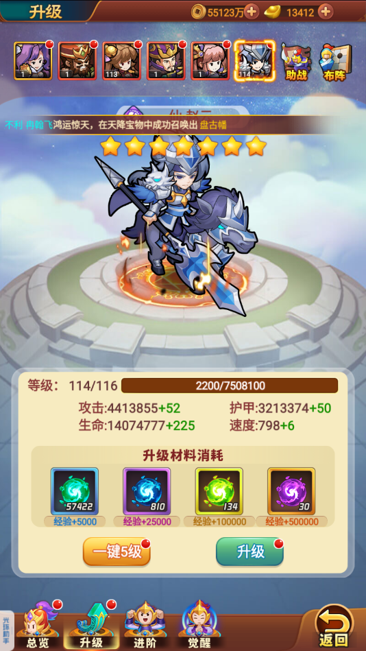 2、但是大家也不要过于苛刻品质这个东西,因为武将进阶带来的加成是最高的,大家一个一转的七星武将助战的属性值和一个五转六星武将的属性值有着非常大的差距。