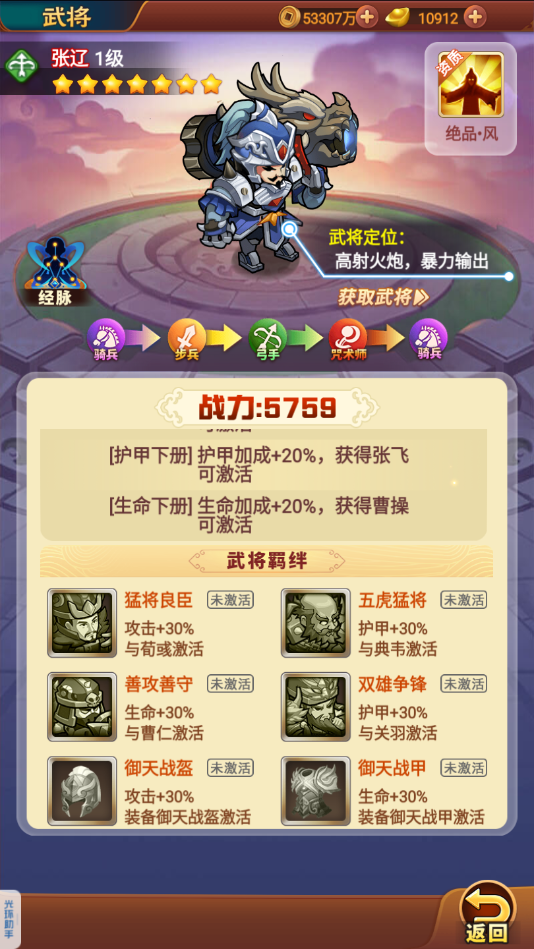(5)护甲下册:攻击加成+20%,获得张飞可激活。
