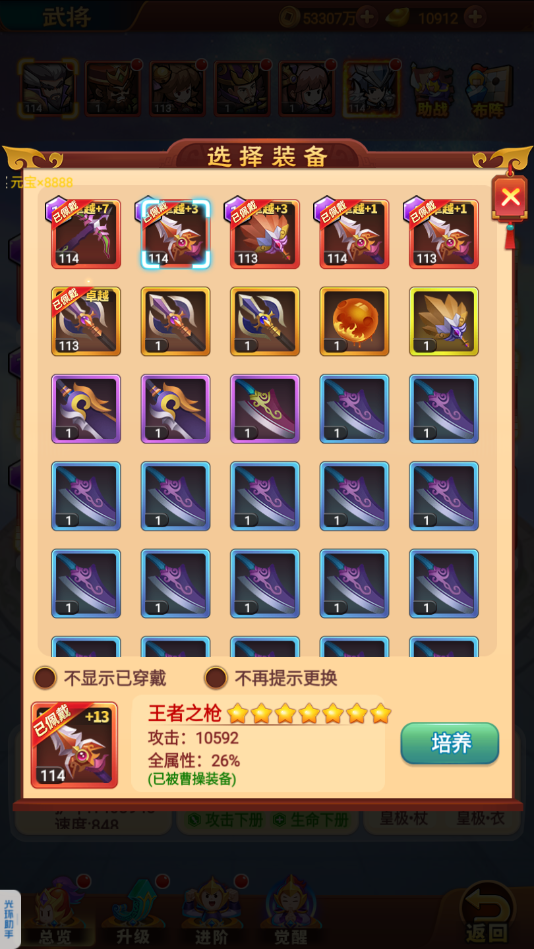 3、主公加成:主公有天赋、将星谱、神器加成,大家按能力选择吧。
