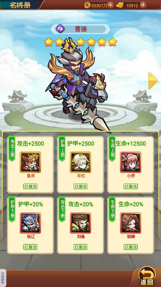 1、名将册:携带助战可以解锁名将册,这些角色不用出站,不过需要助战才可能,但是这个加成是百分比的,是其他加成所不能比的。
