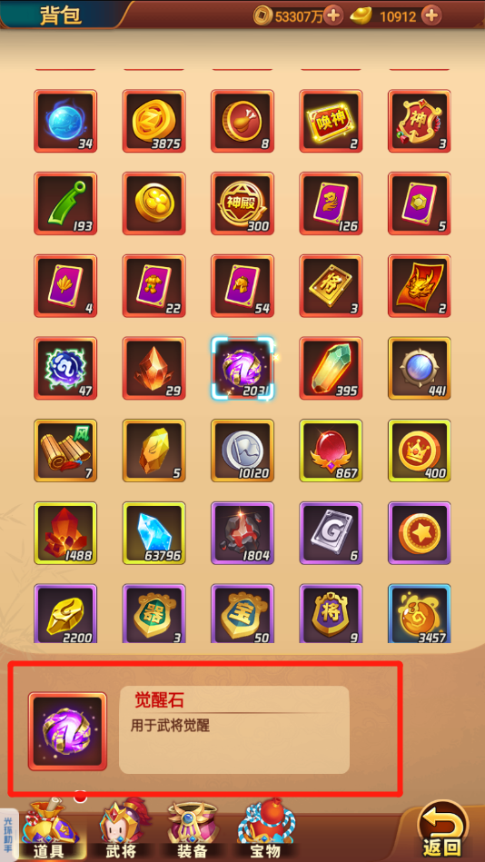 2、觉醒石:顾名思义这个就是专门用来觉醒武将用的,获取渠道比较简单。