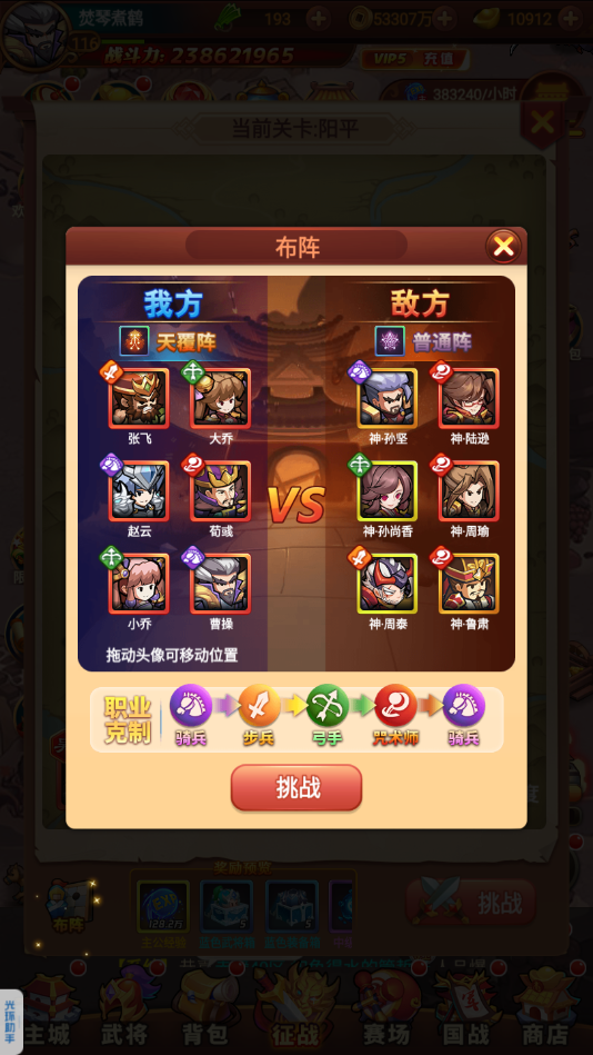 3、因为一共可以上阵六个武将,因此一次两次的尝试也许还是过不了关,多尝试多调整就行了。