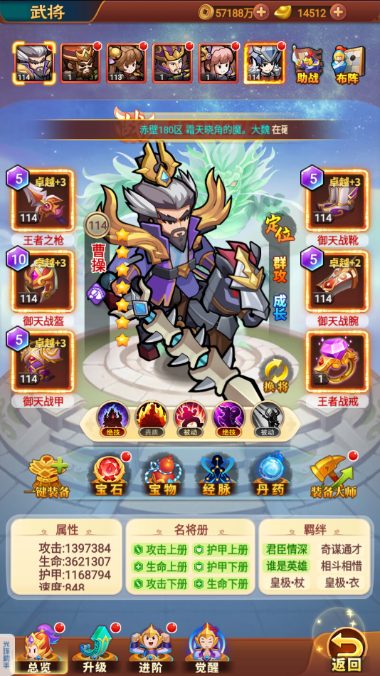 (3)绝技—魏武·冲锋:【魏武之世】有40%概率附带禁疗效果。