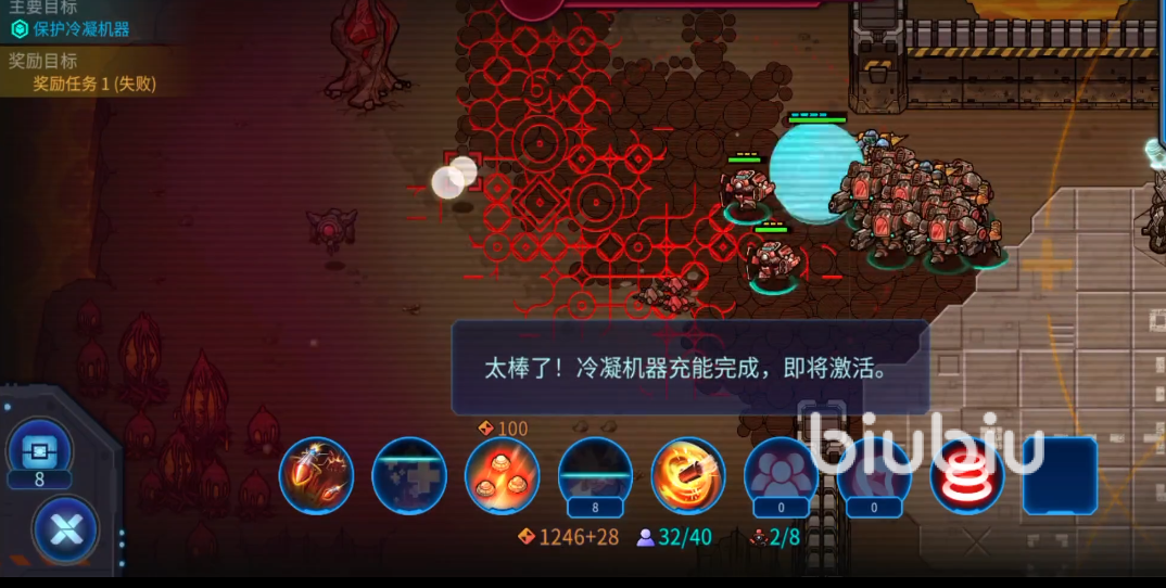 玩家可以看到地图上方有一个巨大的能量条,这就是冷凝机器的充能进度,玩家不需要过于在意进度条,因为它会自动缓慢上涨。