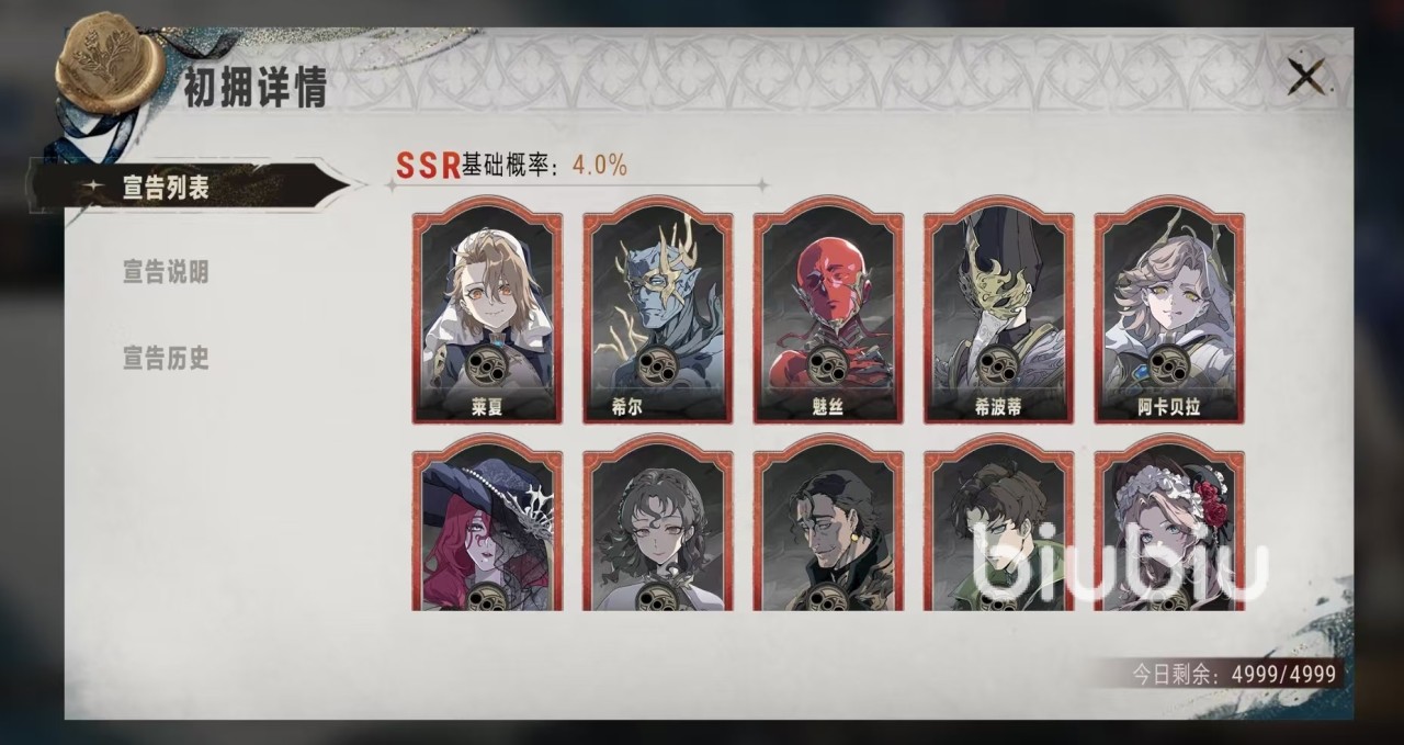 当每次获得ssr角色时,保护规则将会重新计数,也就是即使没有触发保底在60次以内抽到了ssr,那么也会将保底归零重新开始计算。另外在这个池子进行抽卡40次之后,将会解锁祈愿画匣功能。玩家可以通过祈愿画匣在教会、王国、夜族三个阵容中各选择出5个传说品质的角色。选择完成之后,一旦触发这三个阵营的传说品质角色,那么必定会获得祈愿画匣中所选择的人物。这样在后续指定培养的时候是非常重要的。每次在这个池子中进行抽取,还会额外返还一个欢瘾余韵道具,用于在回响商店中兑换商品。