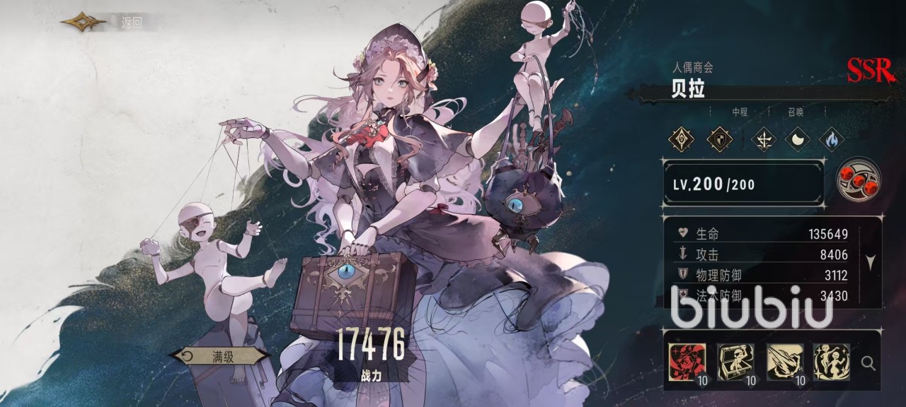 所以在实战中贝拉主要的作用就是不断召唤各种召唤物,这样伤害非常爆炸,而且自身的生存能力也能得到保障。只要场上有召唤物,对方很难直接攻击到贝拉,所以是很强势的一名输出选手。