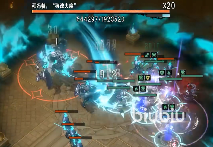 那么玩家就需要集中将附近的小怪击杀,这样就可以利用大招去扣boss的血量,几乎没掉10个血,boss就会召唤小兵来抵消伤害,而玩家的应对方法就是优先消灭小兵,同时队伍里的治疗奶妈要跟上技能保证状态就能完成击杀。