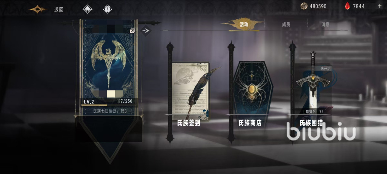 先来看一下氏族签到,只要每天上线之后在这里点击一下签到,就可以获得对应的奖励,主要包括氏族徽记,月之啼等,都是非常实用的道具。获取到的氏族徽记就可以在商店中购买各种各样的商品。这里面的商品主要包括英雄角色,各种蓝图等,其中这些蓝图很多都是其他途径所无法获取到的,只能在氏族商店中兑换,这也凸显出了氏族的重要性。