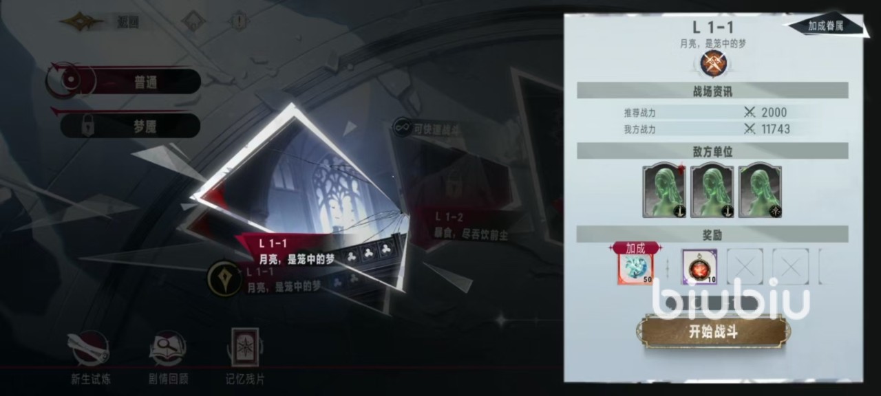 在活动中选中自己要挑战的关卡之后,可以看到有战场资讯介绍,这里包括推荐战力、敌方单位组成以及获取奖励等。确定好之后直接点击开始战斗进入进入到关卡之中。这里的敌人整体难度并不算高,大家合理搭配阵容很轻松就可以战胜,主要是使用合适的眷属,这样能够尽量多的去获得奖励。
