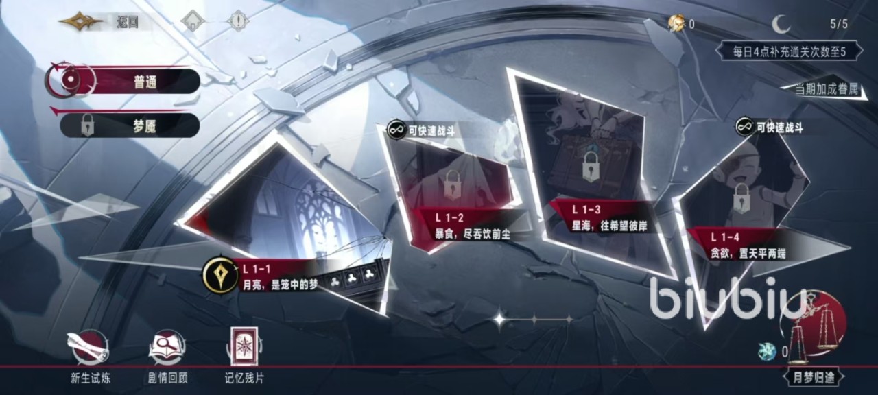 梦魇模式在活动开启之时并不是同步开启,而是需要开启一段时间后才能开放,而且需要通关普通模式后才能体验到。活动关卡战斗需要消耗通关次数,每天4点补充通关次数,最多为5次。大家也可以在限时活动商店月梦归途中购买通关门票星红脐带。这个活动是有加成眷属的,使用这些眷属,可以提高额外奖励获取几率。当概率达到100%时,必定会掉落额外奖励部分。活动关卡是可以重复挑战的,关卡首次通关后,能够使用扫荡功能,通过消耗通关次数或者是通关门票来获得该关卡的奖励。