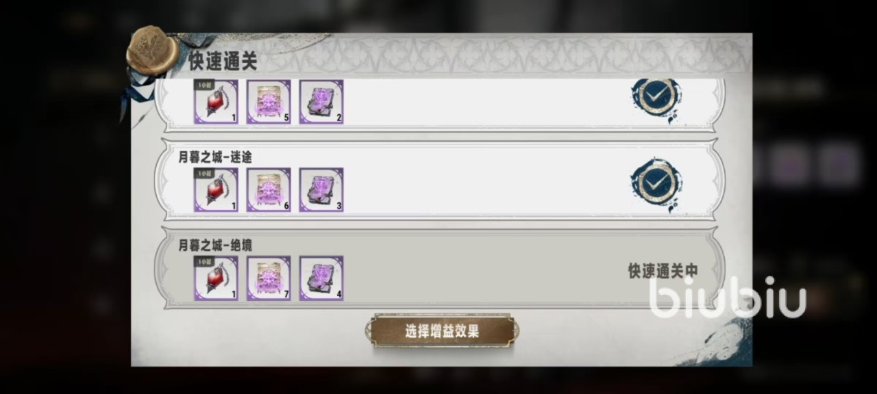 通关一个区域所有的关卡后,就可以获得相应的奖励,并前往下一个区域,每天只可以获得一次区域通关奖励。相信大家已经看出,质点是战斗中的关键,战斗试点分为战斗、战斗危险和战斗头目这三个等级,通关时获得增益效果奖励,难度越高,获得的增益效果等级也就越高。每次挑战结束之后,角色不会恢复生命值,挑战未完成时,敌方单位也无法恢复生命值。这就意味着大家在阵容搭配的时候,一定要有强力的治疗来恢复血量,不然很难一直战斗下去,然后选择的增益,也要按照当前的阵容需要去选。