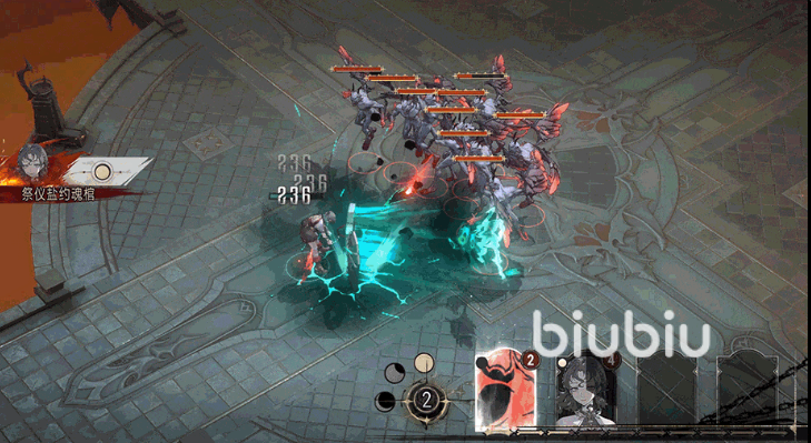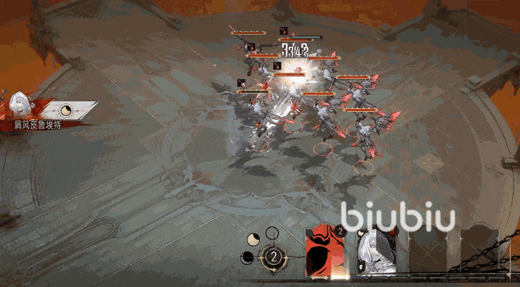 奥义”屑风皮鲁埃特”,依照顺序对距离自己最远的2个敌人冲锋,造成150%攻击力的物伤,并对大招指定的对手冲锋造成350%的物理伤害,冲锋过程中对沿途穿过的对手添加1层持续伤害效果。