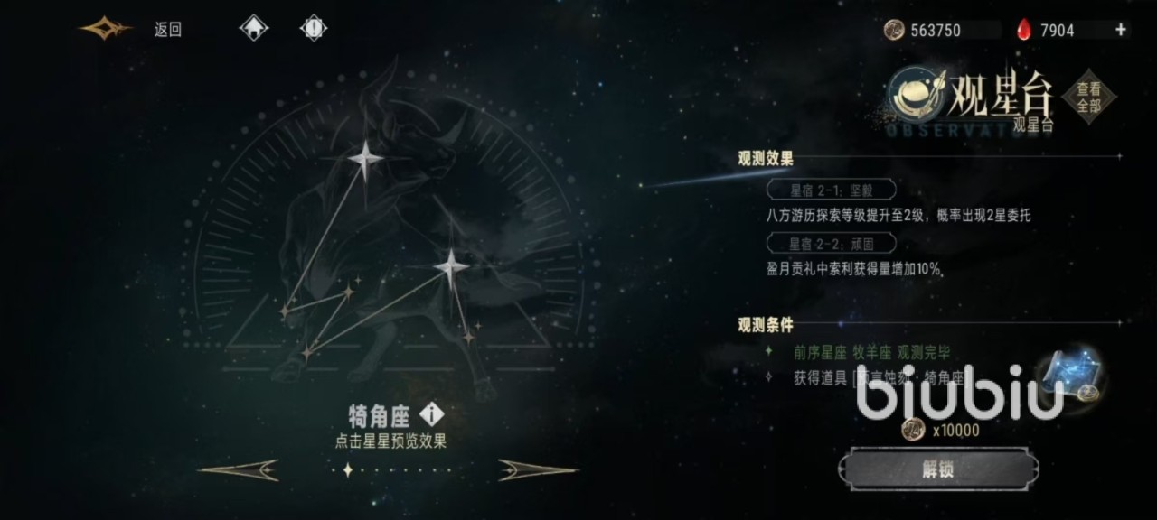 在游戏所打造出的暮色古堡中,有着非常丰富的功能,大家只需要在游戏界面点击进入古堡,就可以通过这里进入承载不同功能的房间。其中有一部分需要推进主线之后才能够解锁。首先是观星台,观星台能够观测星辰的位置和变换,解锁星座后,可观测内部星宿,获得相应加成。需要玩家使用相应的预言蚀刻解锁星座,推进主线剧情可获得预言蚀刻的线索,通过线索在地图探索,可以获得需要的预言蚀刻。
