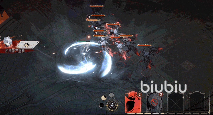 她的奥义“独舞者三重奏”能对指定扇形范围内的敌人造成6段连续斩击,总共会造成600%输出值,随后还会再额外进行一次终结斩击,造成300%物理输出,奥义对带有持续伤害效果的敌人造成输出时,能帮助自身恢复该伤害25%的血量。