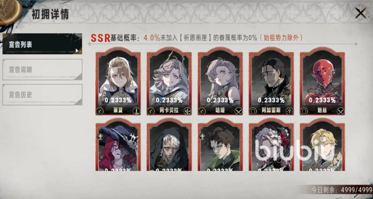 大家需要在在常驻池“苍裔的苏生”累计抽取40次后,才能解锁这个玩法。大家可在教会、王国、夜族三大阵营中各选5名传说角色(共15名,另外始祖阵营(如诺亚、哈提等6名角色)无法被选入,其概率固定不受影响。