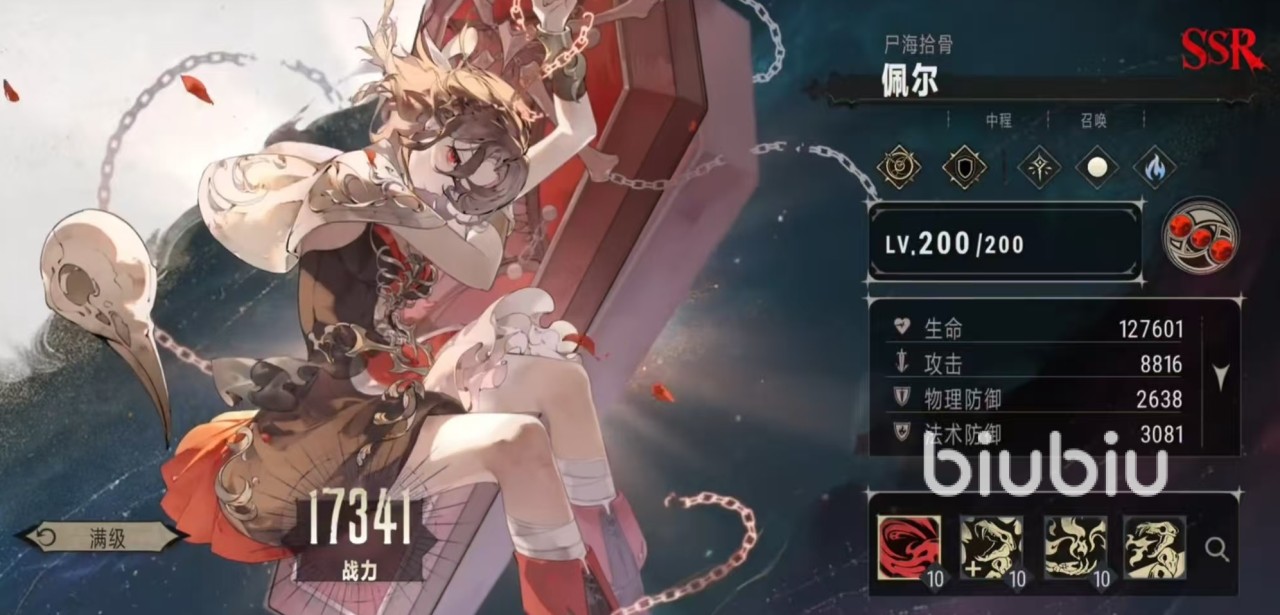 第5个佩尔,佩尔是召唤最终的核心成员,自身的战技每攻击两次就可以释放一次,召唤一个灵骨塔在场上进行攻击,还可以吸引对方的伤害,只要抽到佩尔就可以走召唤流了。第6个琪安德,是dot队的副c角色,负责给对方挂上流血效果,如果想走dot流一定要入手。最后一个伊甸纳,属于群体治疗型角色,虽然奥义消耗高,但治疗能力很强,可以给队伍提供减伤。
