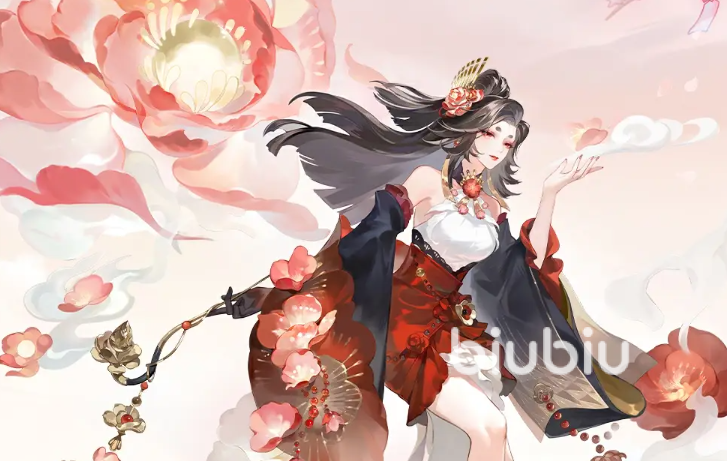 遥念烟烟罗的情人节皮肤也挺不错,主要是红色和黑色色调,带有金色的装饰,显得非常华丽,长发飘逸,头上戴着精致的发饰,背景中有一些粉色的花朵和云朵,营造出一种梦幻般的氛围。