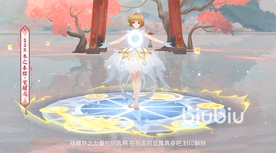 小樱在觉醒以前,是比较日常的服装,觉醒后的形象就是非常经典的魔法少女变身,联动建模还是相当还原的。技能配置上也是比较常见的,普攻被动加大招的组合,普攻的10万伤害不是很多。