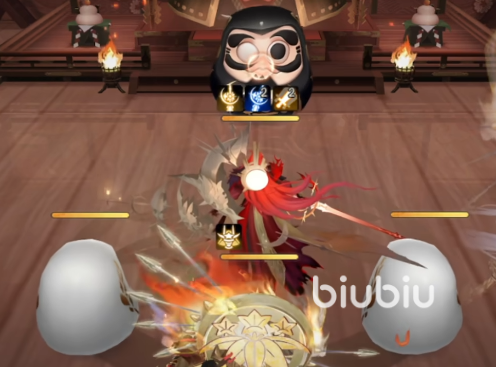他的“骄阳长明”使用后会迸发出神力,攻击所有敌人3次,每次会造成64%伤害,随后对指定目标造成本次攻击总伤害18%的真实伤害,成功击败敌人还能得到3点鬼火,同时强化一次御魂,升级可以让此招攻击伤害不断提升,5级会让群伤增加到80%,并且每有1位敌人被击败时,自身受到的伤害降低7%。