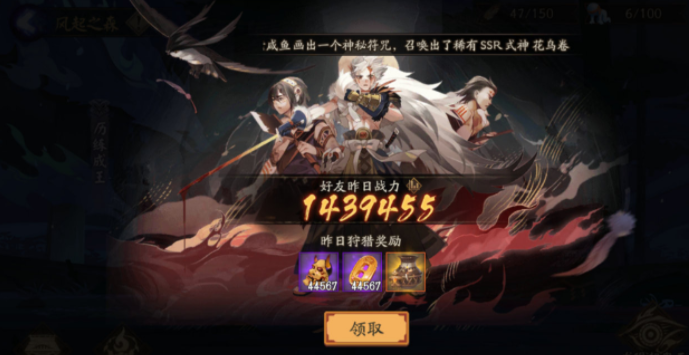 每一天能够刷一百五十个羽毛,每三个羽毛能够任意召唤任意五星的超鬼王(通常前3天全都是低星鬼王,轻易咱们短期内内能够把击倒数目先刷上去。)