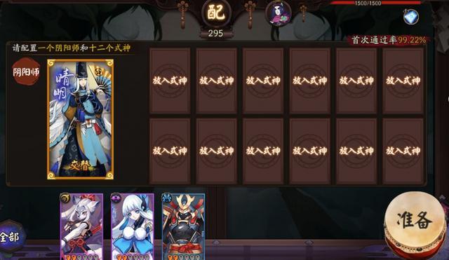 咱们先讨论一下模式,初式神有三位,具体是白狼,雪女和兵俑,开始没御魂可装备。随后是了解的上式神页面,和真大蛇页面有一点类似,差一点认为要刷真大蛇了,但是右上方黑晴明标志露出了。