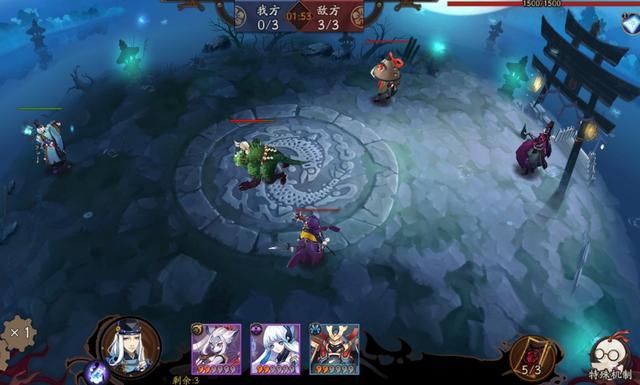 把式神放出场以后,会主动选择敌人攻击,因为放得太晚,因此他们都围在白清明身旁“互殴”,黑晴明却是惬意。