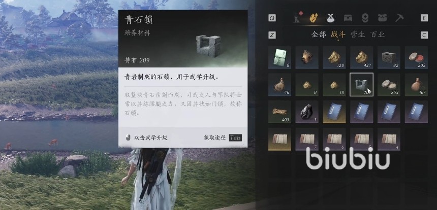 青石锁在游戏内是青石制作出来的石锁,可以用于武学的升级,玩家在获取之后可直接在背包内点击使用,双击就可以给相应的武学进行升级,能够大幅度提升玩家的战力。目前获取青石锁的方法一共有四种,首先第一种就是通过副本获取,我们在挑战游戏内的boss副本时,可以获取一定的培养材料,其中就包含了青石锁的存在。
