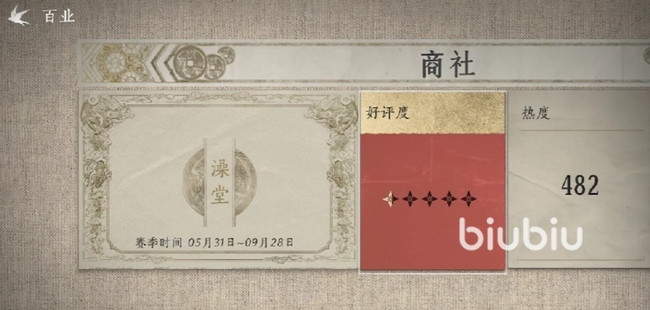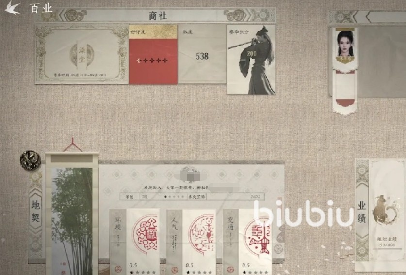 玩家需要通关单人剧情第二章节之后才能解锁百业功能。它是针对于五代十国之中非常有趣的行侠仗义模式,此外还有所谓的花名册,在这里玩家可以看到本区服所有的名人,了解他们的战力以及玩法。另外还有所谓的业绩,这个业绩大家应该都好理解,无论是在酒楼茶馆还是通过走镖,最终玩家都能获取一定的物资奖励,而物资奖励在这里都是可以转换成为业绩的,业绩越高说明玩家对经营的玩法理解的越透彻。